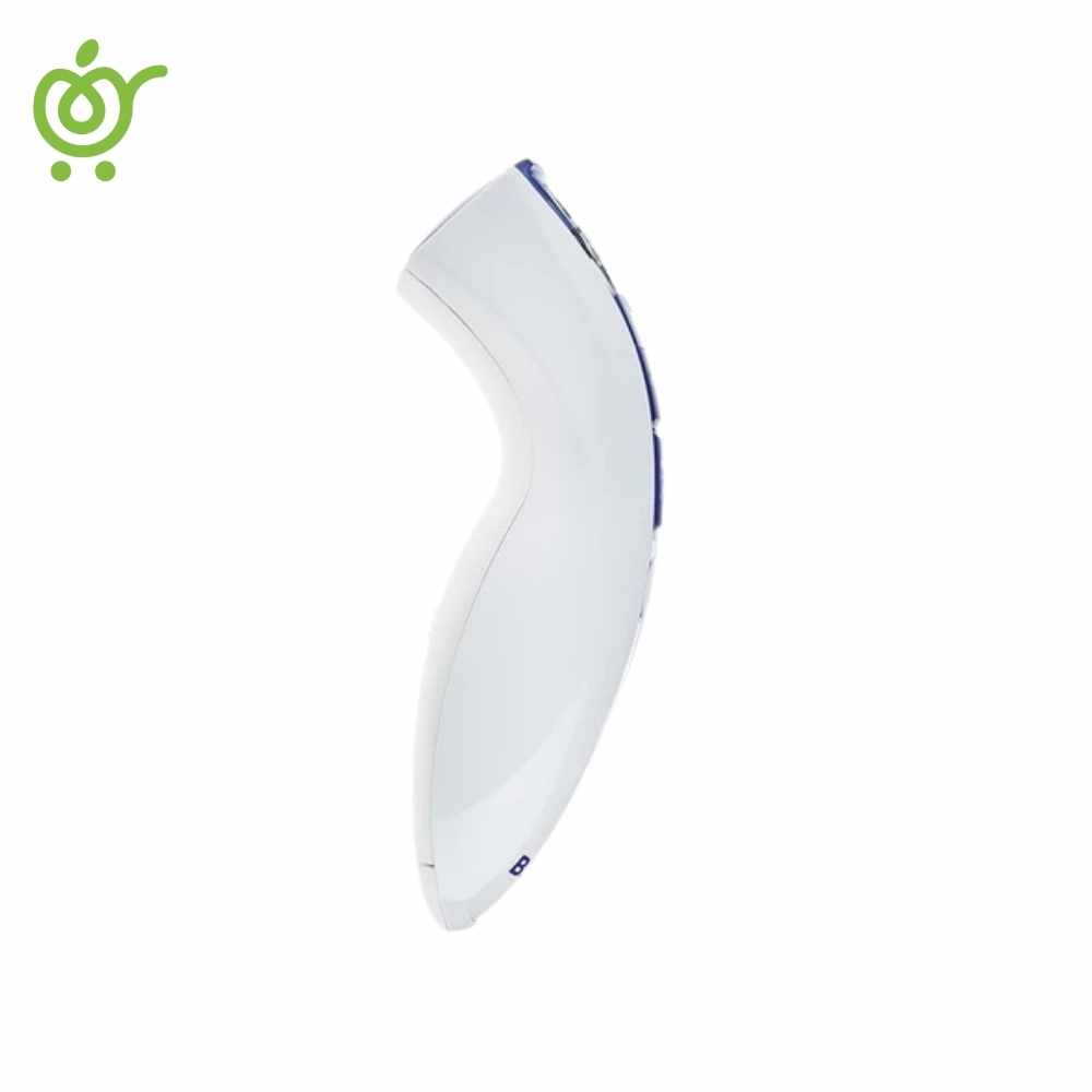 برای اندازهگیری دمای بدن، کافی است دستگاه را مقابل پیشانی فرد قرار دهید؛ نشانگر روی صفحه به شما کمک میکند فاصله صحیح از پیشانی را رعایت کنید تا نتیجه کاملاً دقیق باشد. در عرض یک ثانیه، دمای بدن یا تب بیمار روی صفحه نمایشگر نشان داده میشود و در صورت وجود تب، هشدار لازم فعال میشود.